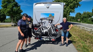 Fahrradträger auf Anhängerkupplung, E-Bikes mieten möglich.Vollkaskoversicherung