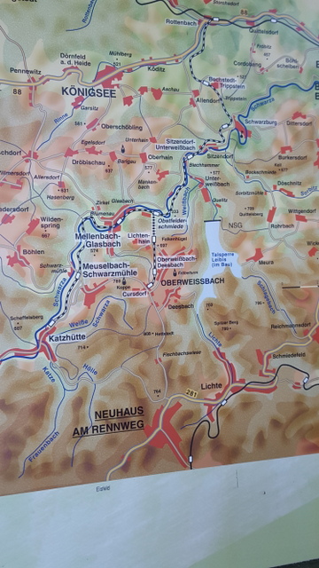 Gesamtstrecke wurde 1900 in Betrieb genommen. Quelle: Thüringer Tourismus GmbH, 99084 Erfurt Die modernisierte und restaurierte Oberweißbacher Berg- und Schwarzatalbahn erschließt das schöne Schwarzatal und die angrenzenden Höhenlagen mit allen sehenswerten touristischen Angeboten der Region. Das Streckennetz umfasst drei Teilstrecken: die Schwarzatalbahn Rottenbach-Katzhütte, die 1,38 km lange Bergbahn mit ihren historischen Wagen von Obstfelderschmiede nach Lichtenhain und die Flachstrecke mit rekonstruierten Elektrotriebwagen ET 479 bis zum Endhaltepunkt Cursdorf. Die einzigartige Standseilbahn überwindet während der Fahrt mit 25% Steigung einen Höhenunterschied von 323 m. Heute ist sie als technisches Denkmal eine touristische Attraktion, da die Bauweise der Wagen mit einem Personenwagen und einer Güterbühne zum Transport normalspuriger Eisenbahnwagen weltweit einmalig ist. Ein besonderes Highlight ist die Fahrt im Cabrio-Wagen. Von Mai bis Oktober ist dieser bei schönem Wetter auf die Güterbühne aufgesetzt. Als weitere Besonderheit verkehrt ab Mai zwischen Lichtenhain und Cursdorf der „Olitätenwagen“. Dieser lädt Sie dazu ein, Kräuter und Olitäten mit allen Sinnen zu entdecken. Die Schwarzatalbahn verkehrt stündlich, die Bergbahn halbstündlich. Die Bergbahn und Flachstrecke sind für mobilitätseingeschränkte Personen geeignet. Quelle: Nahverkehrsservicegesellschaft Thüringen mbH 99084 Erfurt
