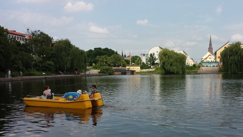 Vom Campigplatz in Thale fuhr ich am 28.05.2025 nach Merseburg, wo ich immer an der Gärtnerei meiner Verwandtschaft einen sehr guten Parkplatz habe. Merseburg ist die Stadt meiner Vorväter, einer hatte mit anderen sechs Tischlern an dem Gestühl des Merseburger Doms gearbeitet. Am Himmelfahrtstag machte ich einen Ausflug per Fahrrad zum Geiseltalsee, einem ehemaligen Braunkohletagebau.